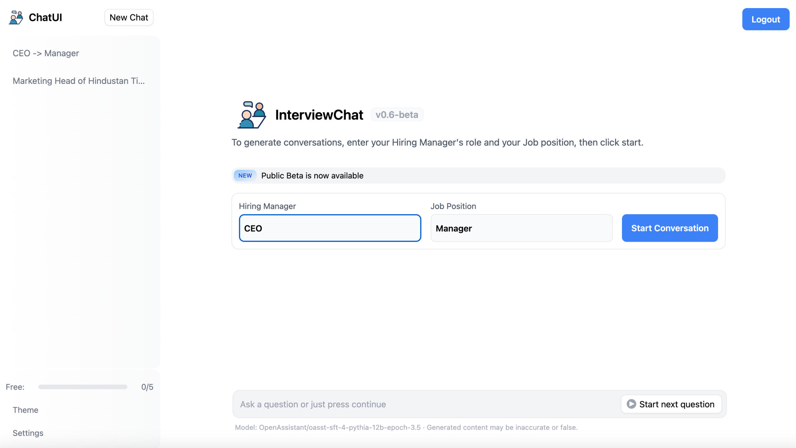 Interviews can be nerve-wracking, and going in unprepared can cost you the job or make social interactions awkward. InterviewChat offers AI-assisted mock interviews to help you practice, gain confidence, and navigate any conversation with ease.